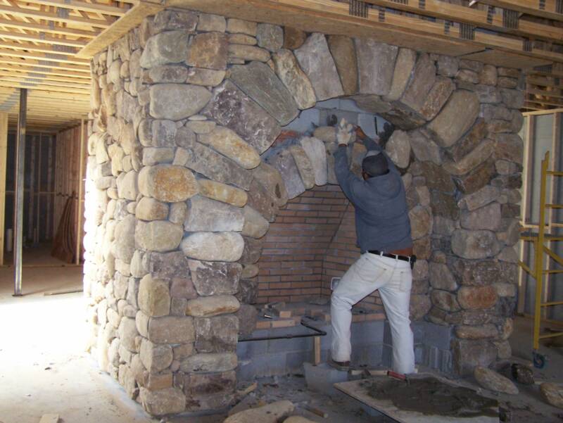 The double sided unit (right), is constructed of more than 40 tons of solid rock. It divides the kitchen and great room and is open on both sides. This natural stone fireplace is one of the most impressive you will find in any home, anywhere.