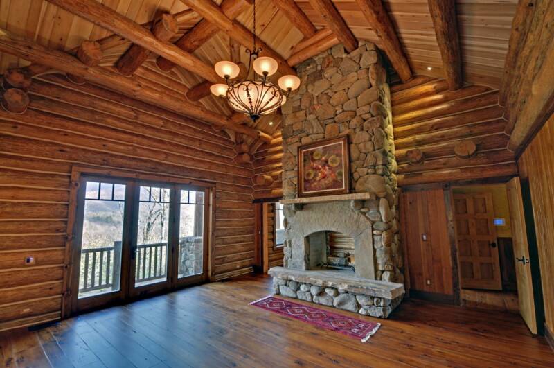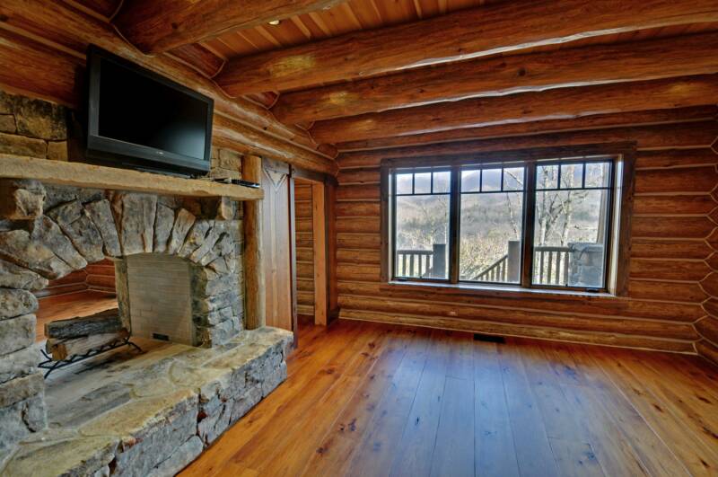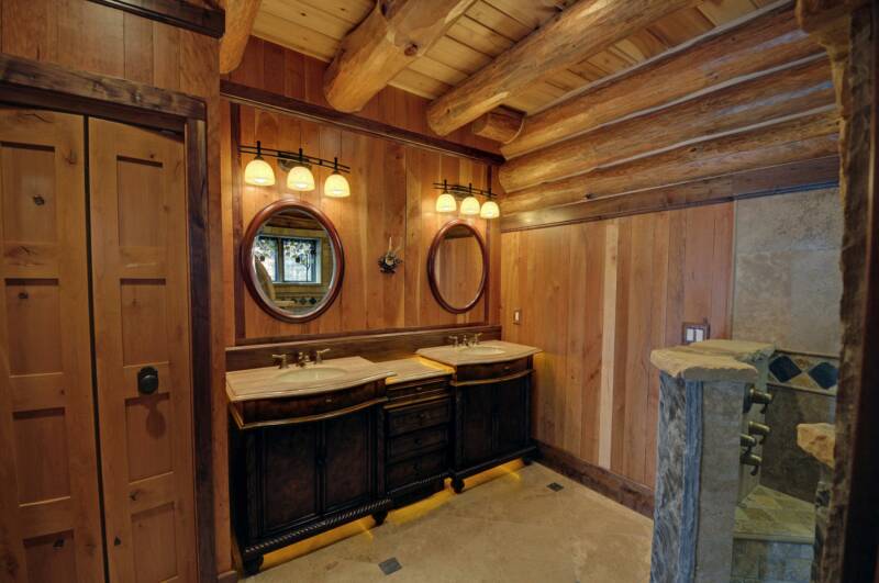 The perimeter walls of the master suite are log and the interior walls of solid, vintage cherry and walnut. There is private rear access to the rear covered & lighted deck area.