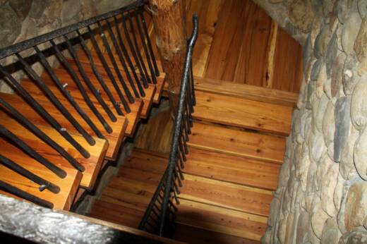 The Tower's upper antique support beams (photos) came from timber beams that were reclaimed from a "days gone by" tobacco factory in Rockingham, NC. The factory had stood for more than 150 years when it was dismantled a few years ago. The heartwood pine that these beams were cut from originally, exhibit growth rings that add another 100+ years to their history.